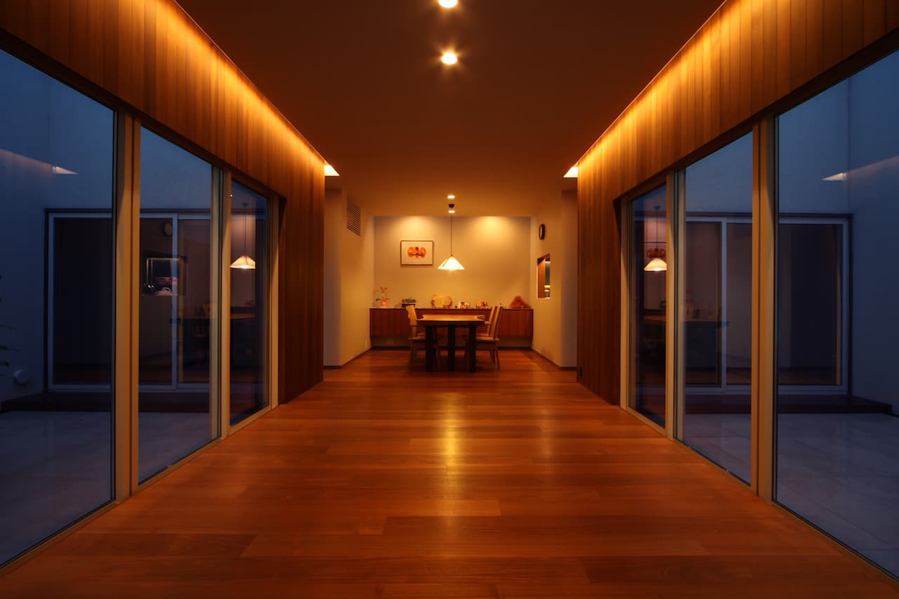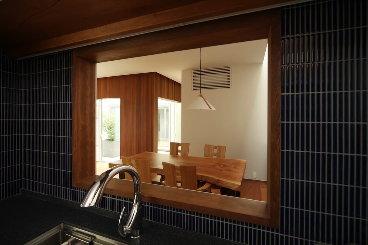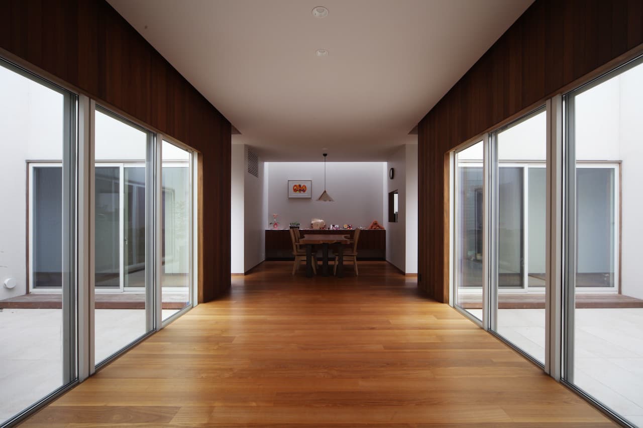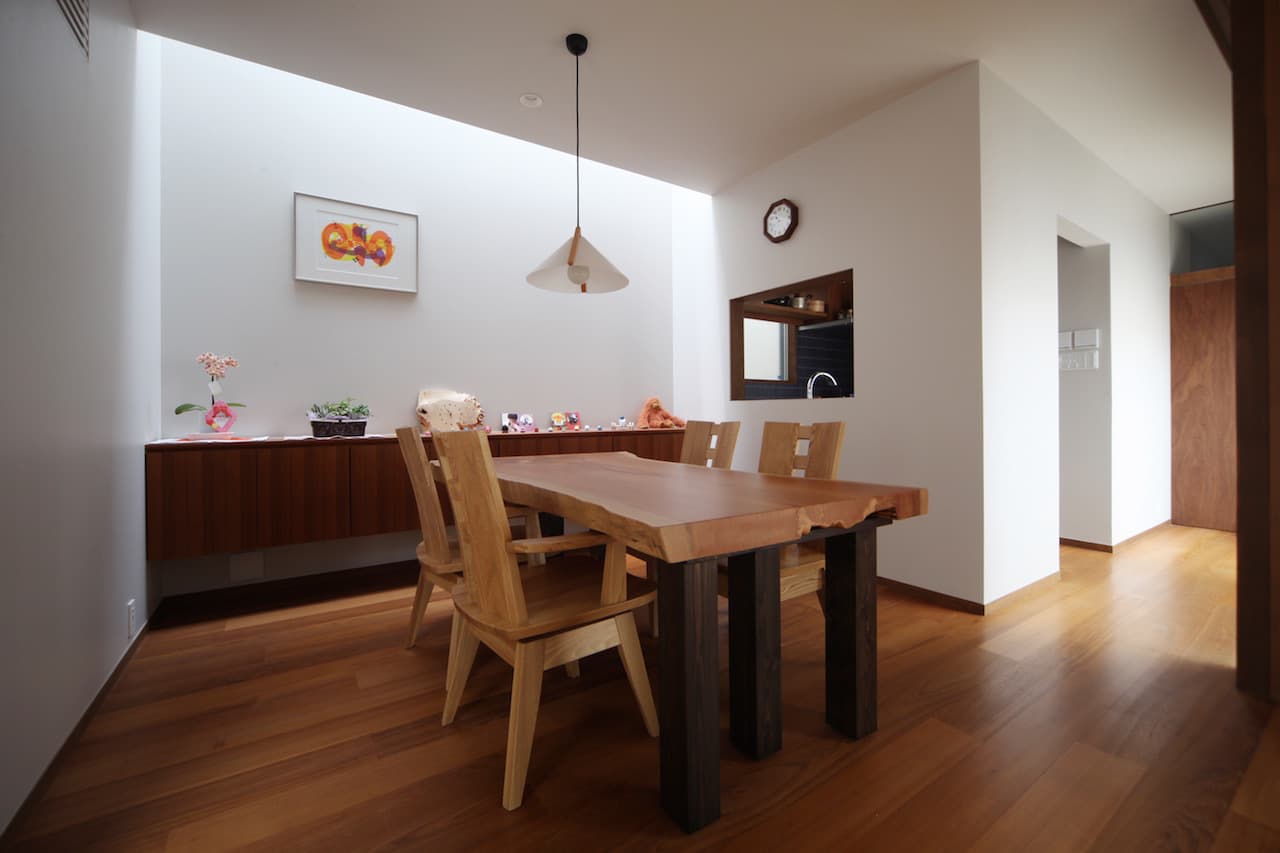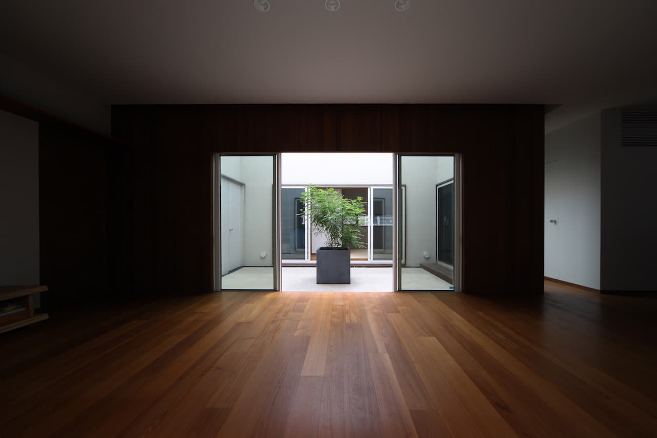 発展途上の新しい住宅街、そして角地という特殊性。この街並みに対してどう建ち振る舞うべきか考え込みました。角地で建てるということは他の場所で建てることよりも責任が重く、住宅ではあるけど、ある種の公共性も兼ね備えるべきなのではないかと考えたわけです。そして、敷地と道路には大きな高低差がありました。周辺の敷地も似たような条件ではあるけど、その多くは擁壁や駐車場で単調に解決され、とても寂しい風景しかありませんでした。そして、今後建つであろう住宅もきっと同じ過ちを繰り返すに違いないと憂慮したわけです。そこで、土地の形状の変形を最小限に抑え、元からあった法面を街への「庭のお裾分け」として考えることにしました。建物はセットバックされ、街行く人に与える圧迫感を抑えることができ、街並みに彩どりを与えることになりました。