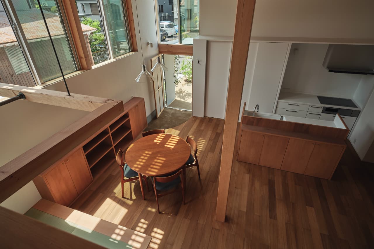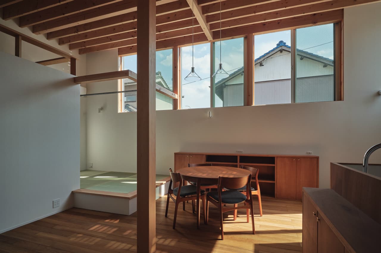 「瀬古の家」は住まい手のNさんの大らかさがプランや住まい方にうまく反映されて、面積としては小さいながらも、生活と街の風景が混ざり合っていくような大きな住まいを手に入れることができました。